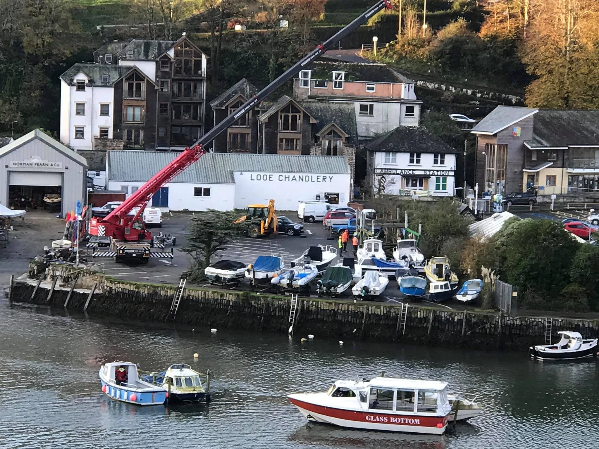 Late October (and again late March), for larger vessels we hire in a 60-100 tonne crane which is used by our local fleet of commercial tour boats, as well as private owners.